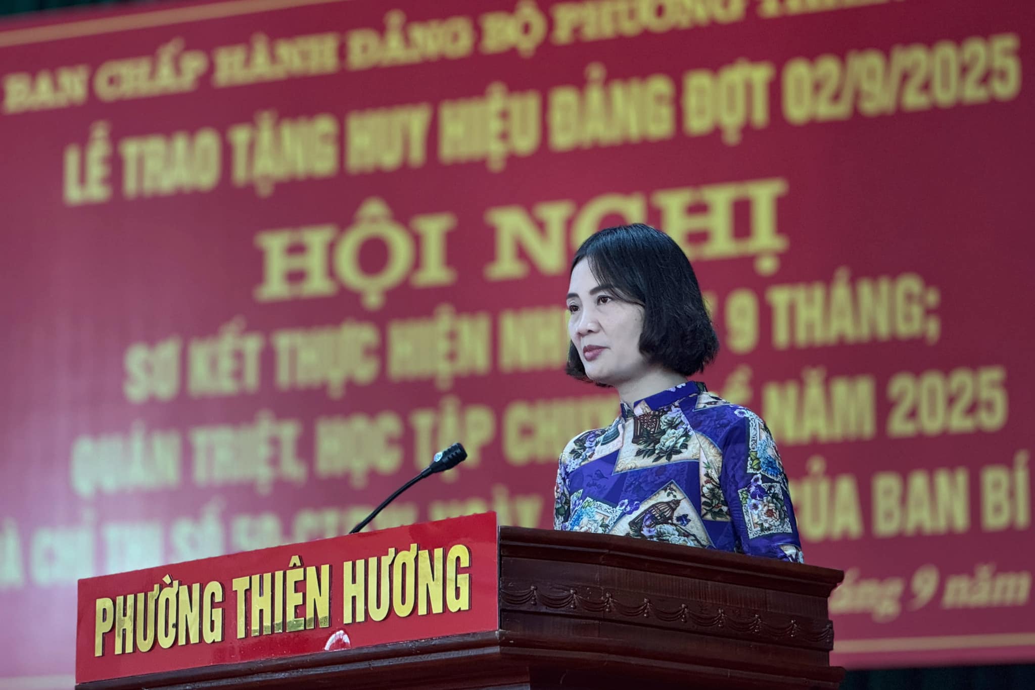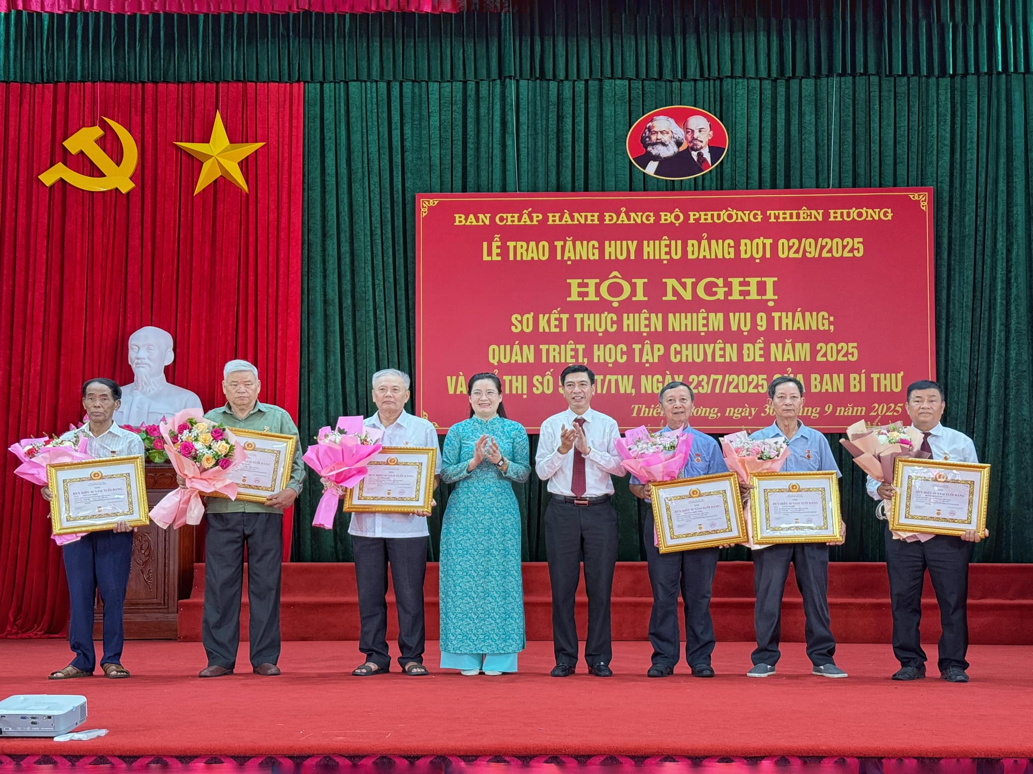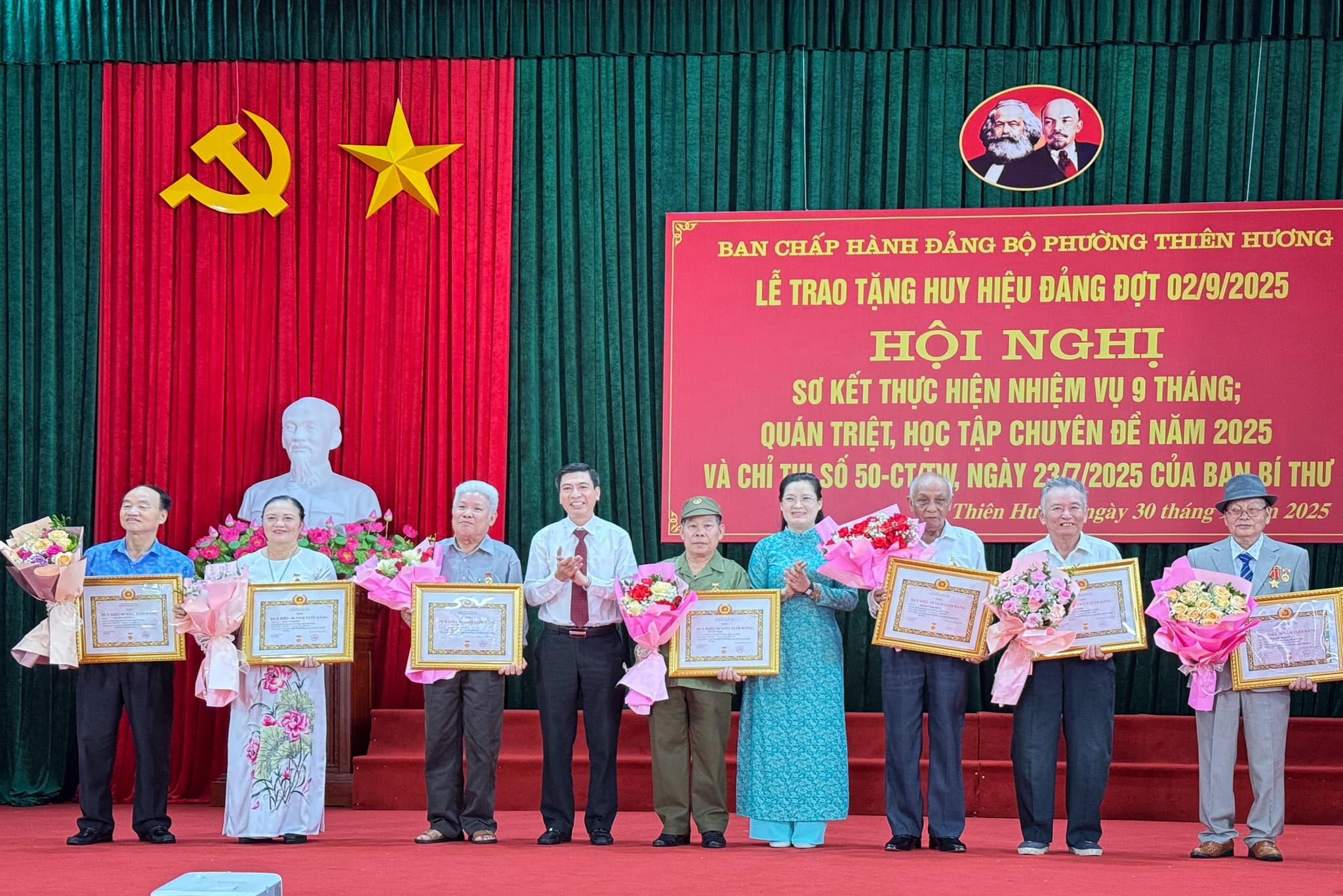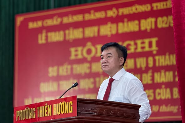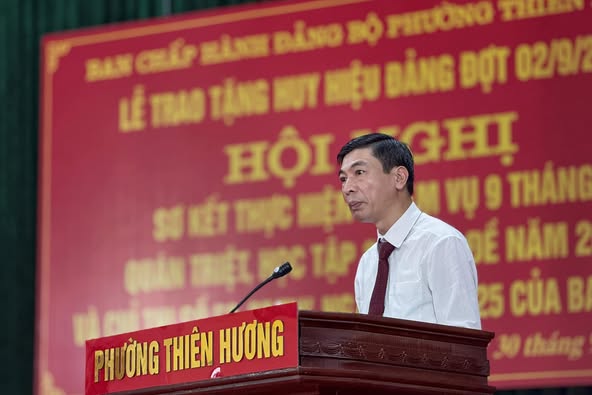 Sáng ngày 30/9, Ban Chấp hành Đảng bộ phường Thiên Hương long trọng tổ chức Lễ trao tặng Huy hiệu Đảng đợt 2/9/2025, sơ kết thực hiện nhiệm vụ 9 tháng; quán triệt, học tập chuyên đề năm 2025 và Chỉ thị số 50-CT/TW, ngày 23/7/2025 của Ban Bí thư .