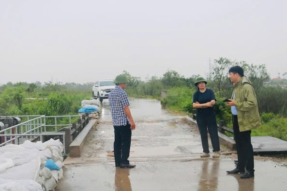 Lãnh đạo phường Thiên Hương kiểm tra các điểm đê xung yếu. 🌧️ 🌧️ 🌧️