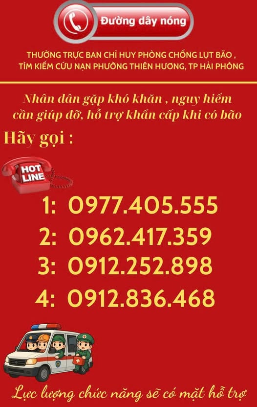 Nhân dân gặp khó khăn, nguy hiểm cần giúp đỡ hỗ trợ khẩn cấp khi có bão hãy gọi: