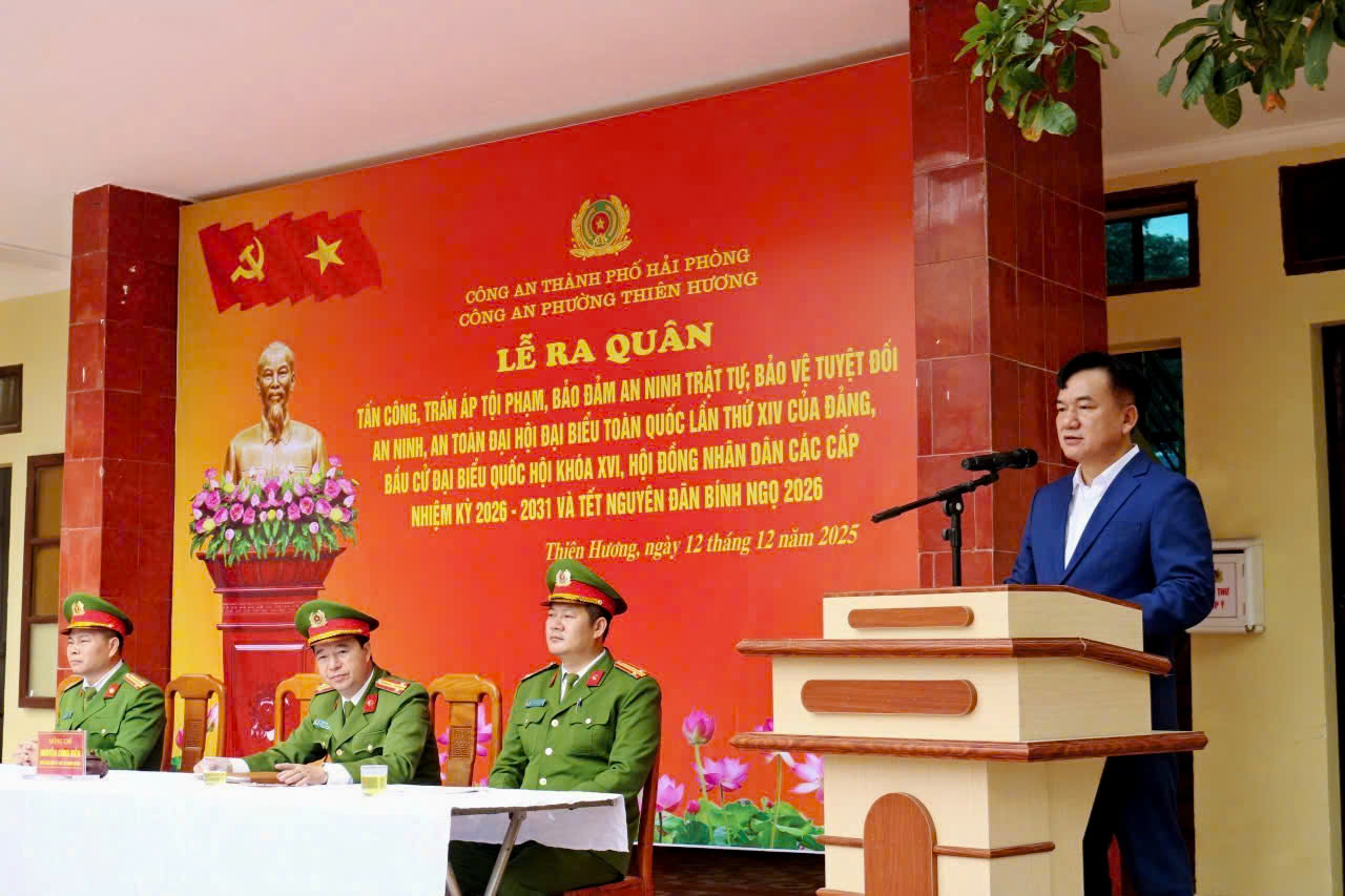Sáng ngày 12/12/2025, Công an phường Thiên Hương tổ chức Lễ ra quân đợt cao điểm tấn công, trấn áp tội phạm; đảm bảo an ninh, trật tự, góp phần bảo vệ tuyệt đối an toàn Đại hội đại biểu Toàn quốc lần thứ XIV của Đảng, cuộc bầu cử Đại biểu Quốc hội khóa XVI, HĐND các cấp nhiệm kỳ 2026–2031 và Tết Nguyên đán Bính Ngọ 2026 trên địa bàn phường.