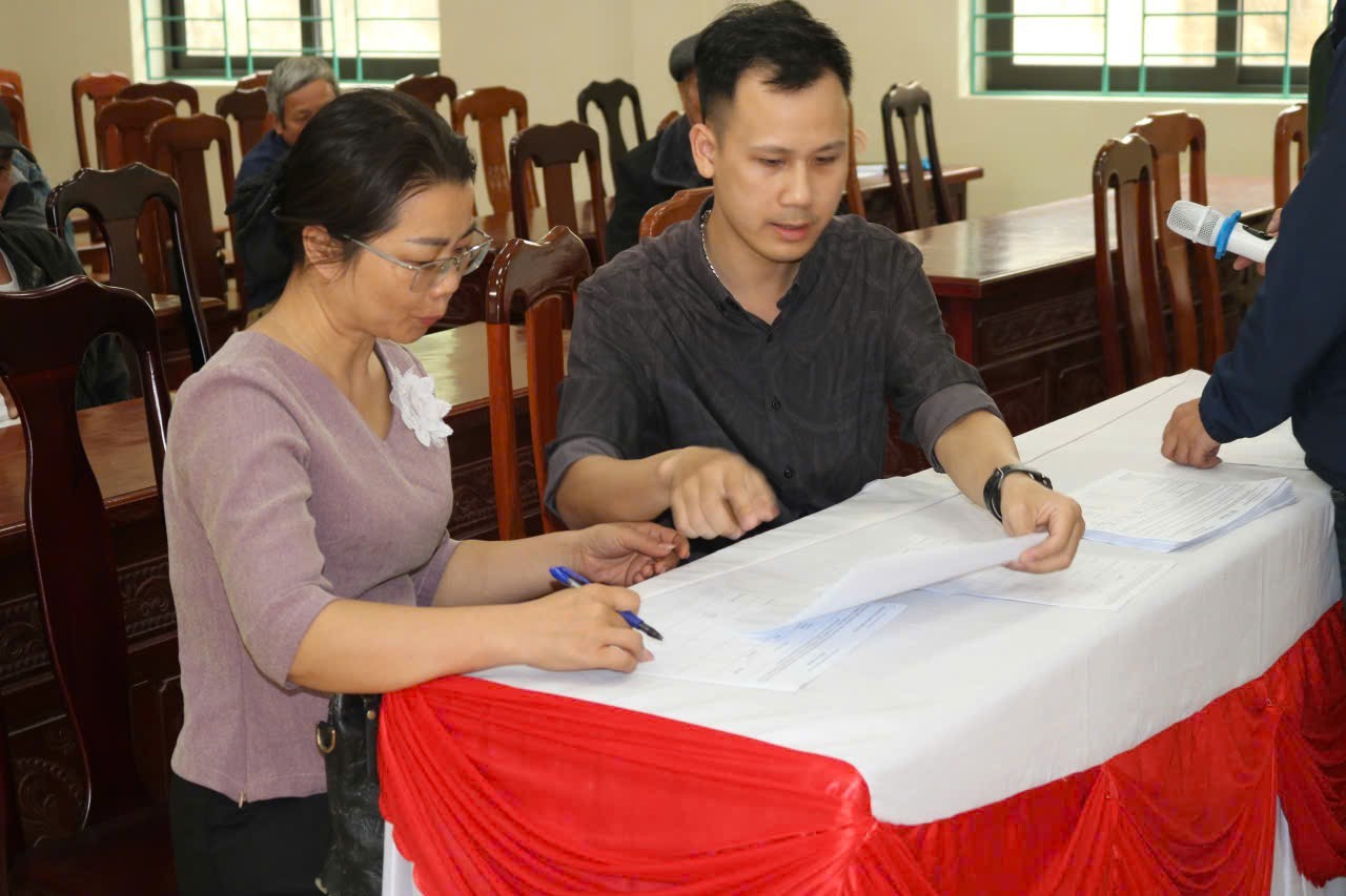 Đại diện hộ gia đình kiểm tra phương án bồi thường hỗ trợ thực hiện dự án