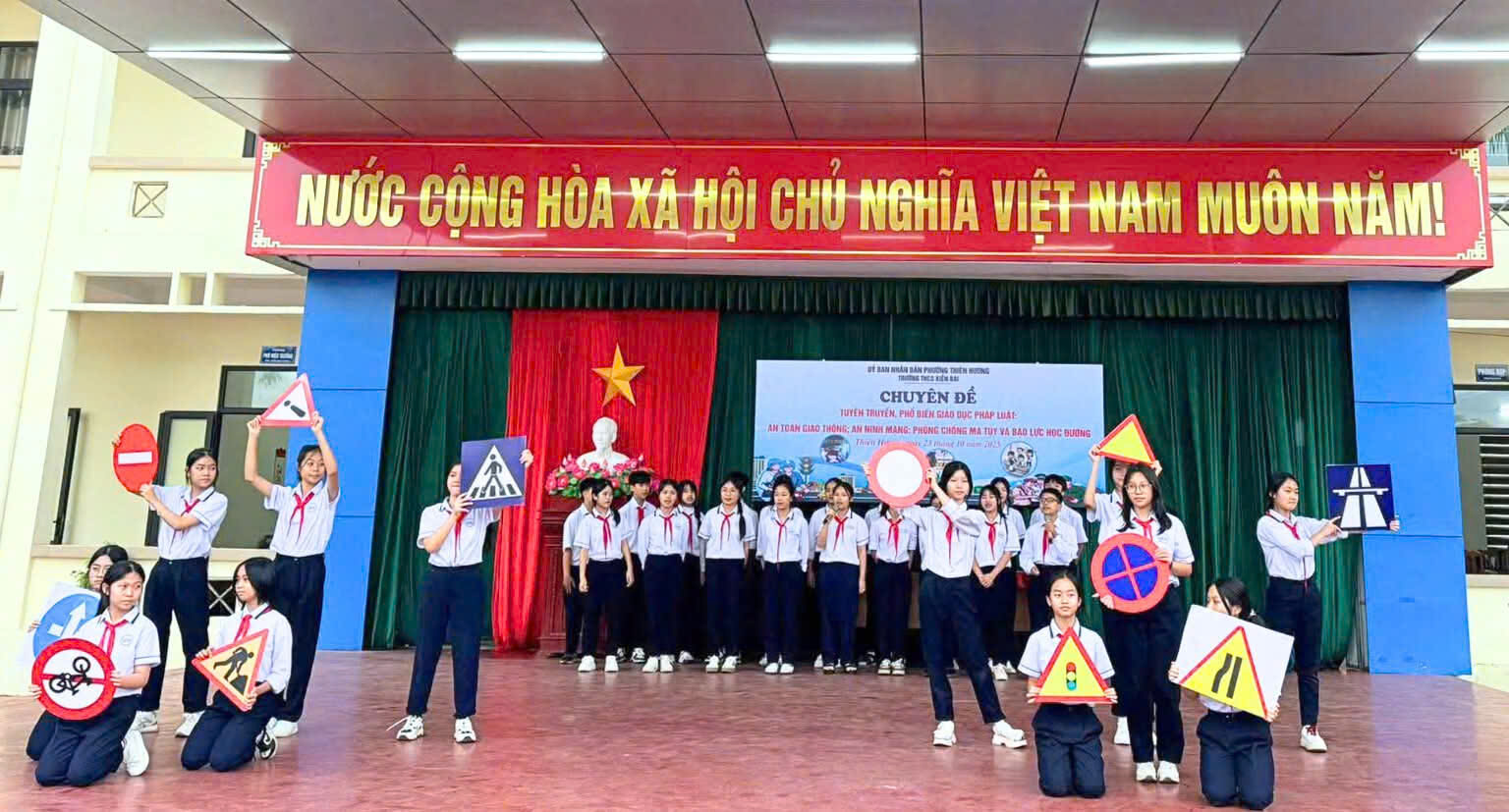 Đoàn Thanh niên phường Thiên Hương phối hợp với Công an phường tổ chức các buổi tuyên truyền về phòng, chống ma túy và an toàn giao thông tại Trụ sở UBND phường, trường THCS Hoàng Động và trường THCS Kiền Bái.