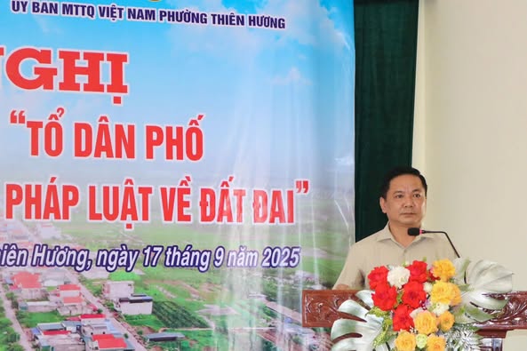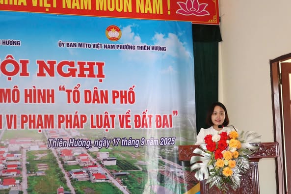 Chiều ngày 17/9, tại Tổ dân phố Hoàng Động 4, Uỷ ban nhân dân và Ủy ban Mặt trận Tổ quốc phường Thiên Hương tổ chức hội nghị ra mắt mô hình “Tổ dân phố không phát sinh vi phạm pháp luật về đất đai” trên địa bàn phường.