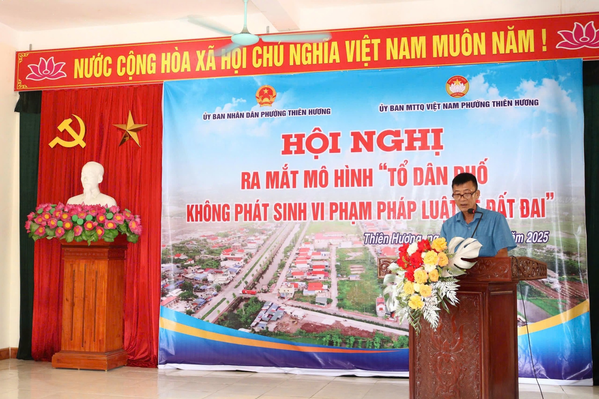 Uỷ ban nhân dân và Uỷ ban Mặt trận tổ quốc Việt Nam phường Thiên Hương phối hợp ra mắt mô hình “Tổ dân phố không phát sinh vi phạm pháp luật về đất đai”.