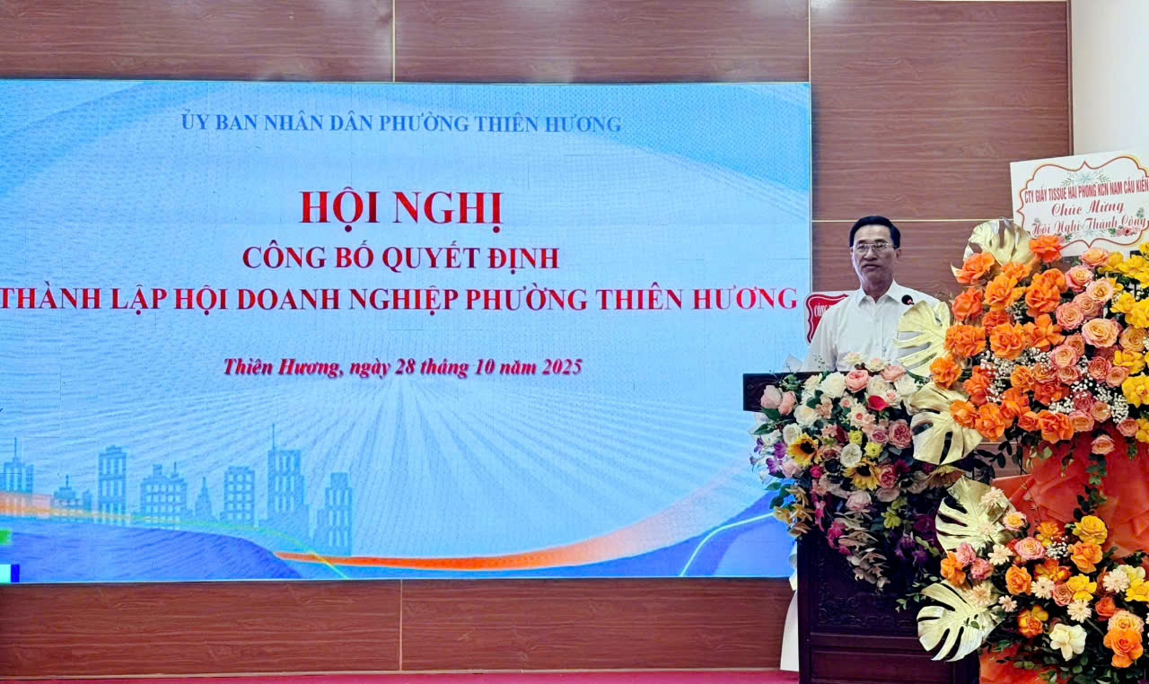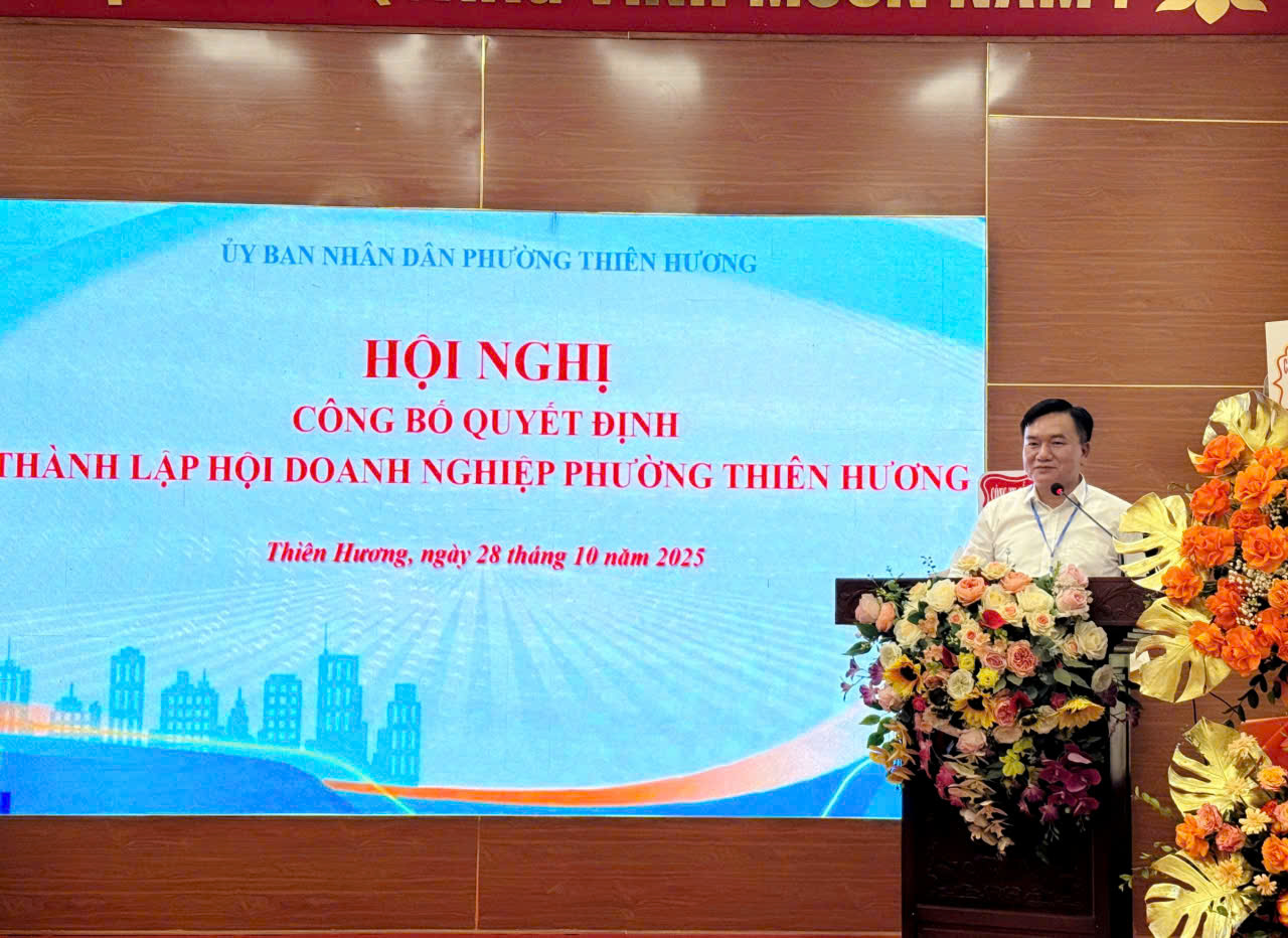 Chiều ngày 28/10, Ủy ban nhân dân phường Thiên Hương tổ chức Hội nghị công bố Quyết định thành lập Hội Doanh nghiệp phường Thiên Hương. 🌿🍁 🌿🍁🌿🍁