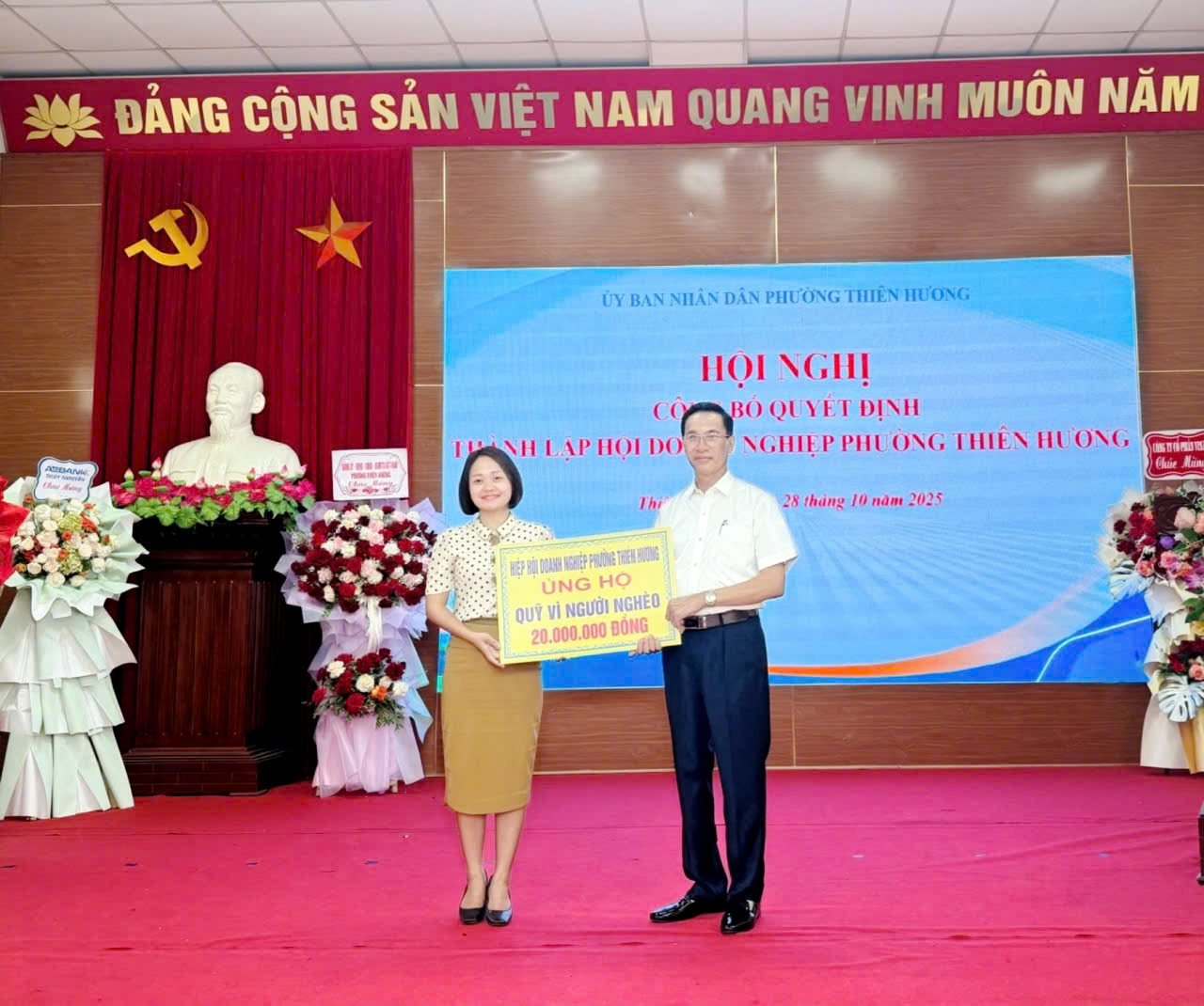 🌿🍁Đặc biệt, tại Hội nghị, thể hiện tinh thần trách nhiệm xã hội và tấm lòng nhân ái, Hội Doanh nghiệp phường Thiên Hương đã trao tặng 20 triệu đồng ủng hộ Quỹ “Vì người nghèo” phường Thiên Hương – một nghĩa cử cao đẹp, lan tỏa tinh thần “Doanh nghiệp đồng hành cùng địa phương vì cộng đồng no ấm, hạnh phúc.”