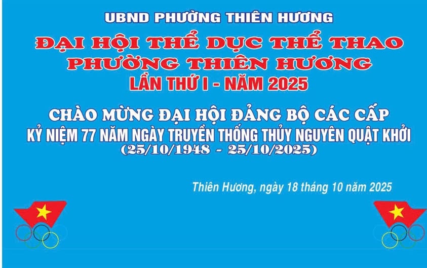 UBND phường Thiên Hương trân trọng kính mời toàn thể Nhân dân, cán bộ, đảng viên, công chức, viên chức, đoàn viên, thanh niên và các vận động viên trên địa bàn phường đến tham gia, cổ vũ cho Đại hội.