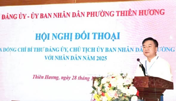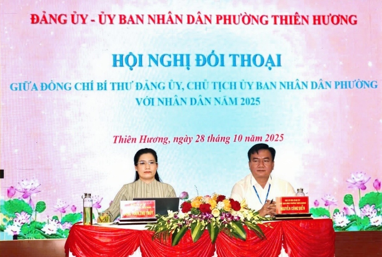 Sáng ngày 28/10, Đảng ủy – Ủy ban nhân dân phường Thiên Hương tổ chức Hội nghị đối thoại giữa đồng chí Bí thư Đảng ủy, Chủ tịch Ủy ban nhân dân phường với Nhân dân năm 2025. Đây là hoạt động có ý nghĩa quan trọng, thể hiện tinh thần dân chủ, gần dân, lắng nghe dân và vì dân phục vụ, góp phần củng cố niềm tin của Nhân dân đối với cấp ủy, chính quyền địa phương.