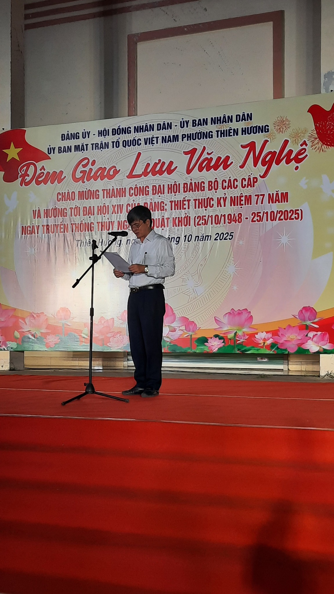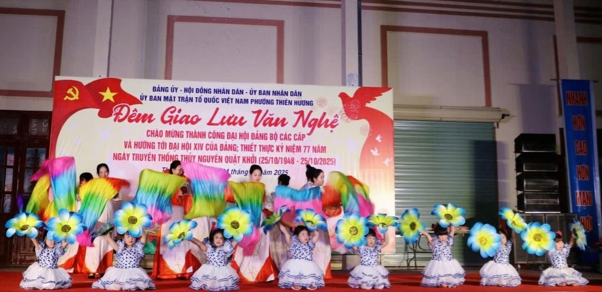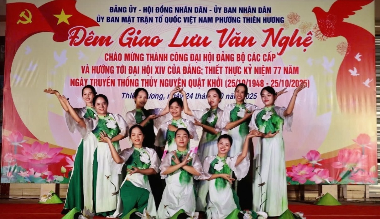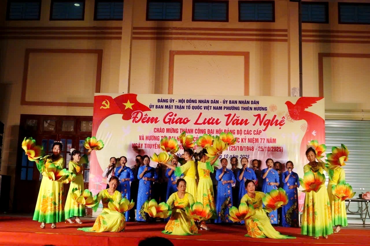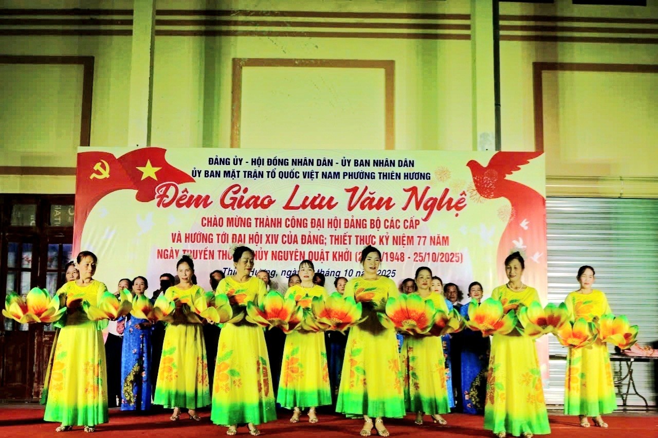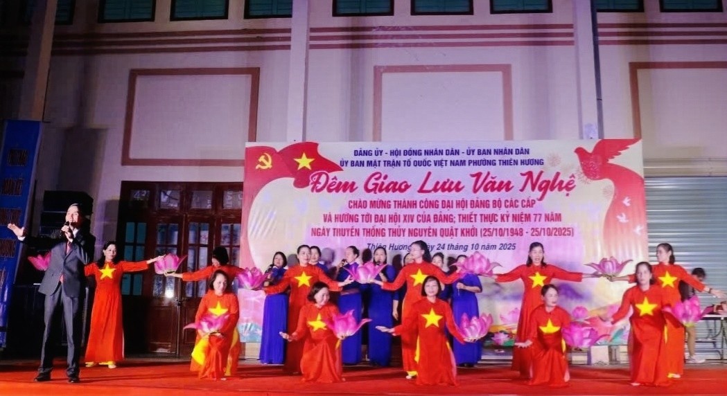️🎉️🎤️🎶Tối 24/10, tại Sân vận động Trung tâm Nhà Văn hóa – Thể thao phường Thiên Hương, đã diễn ra đêm giao lưu văn nghệ quần chúng đặc sắc, chào mừng thành công Đại hội Đảng bộ các cấp, hướng tới Đại hội XIV của Đảng, đồng thời kỷ niệm 77 năm Ngày truyền thống Thuỷ Nguyên quật khởi (25/10/1948 – 25/10/2025).