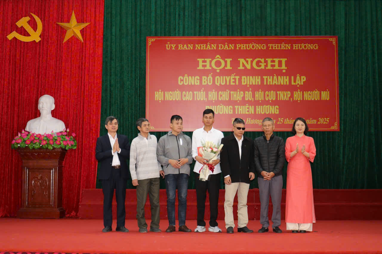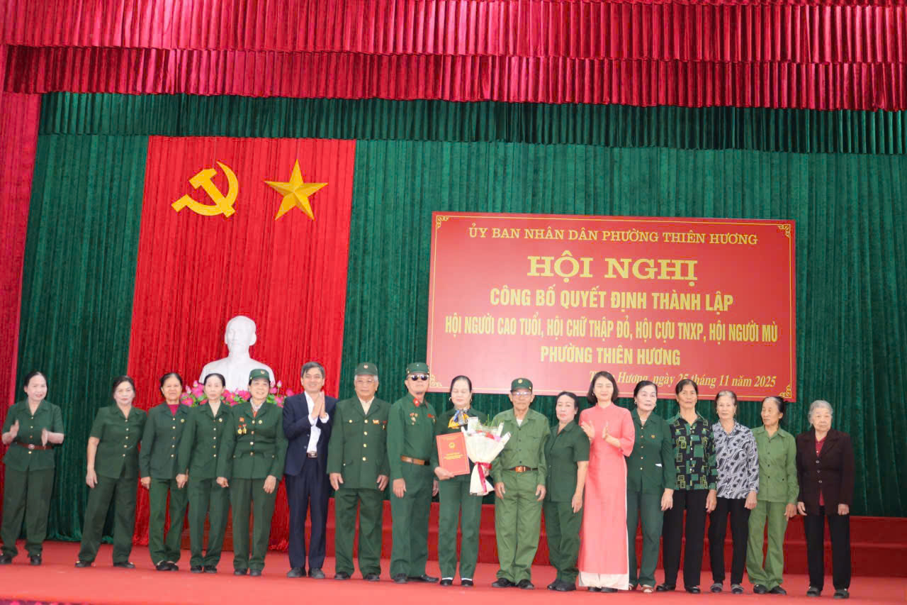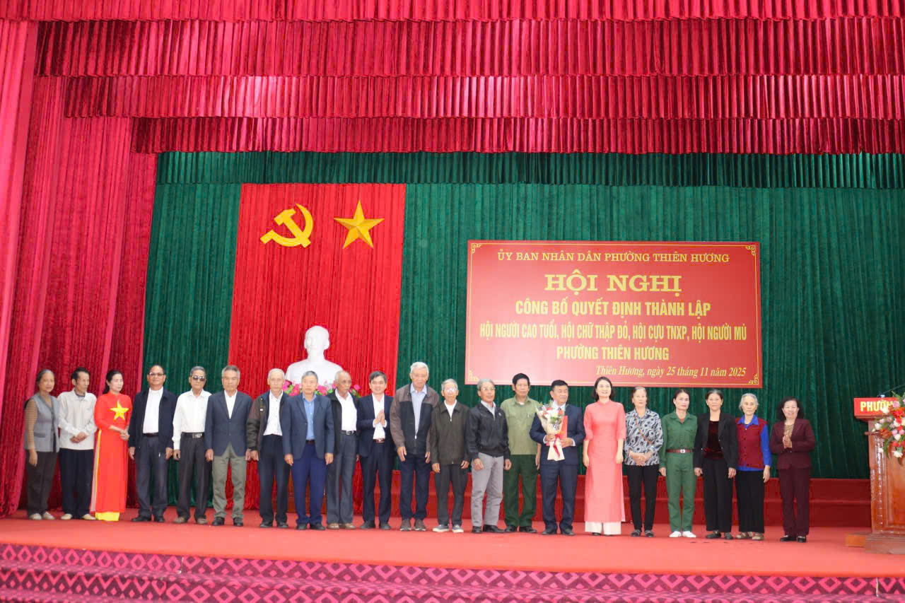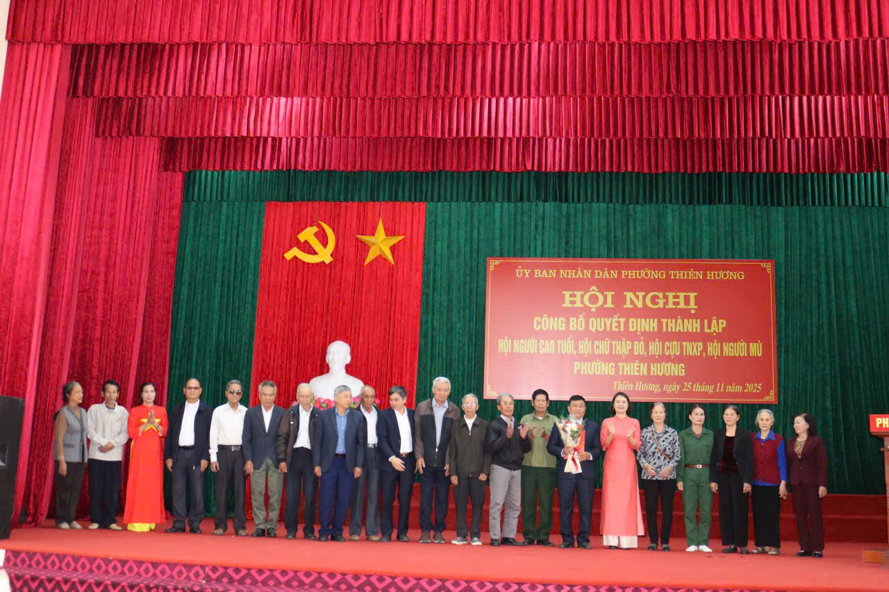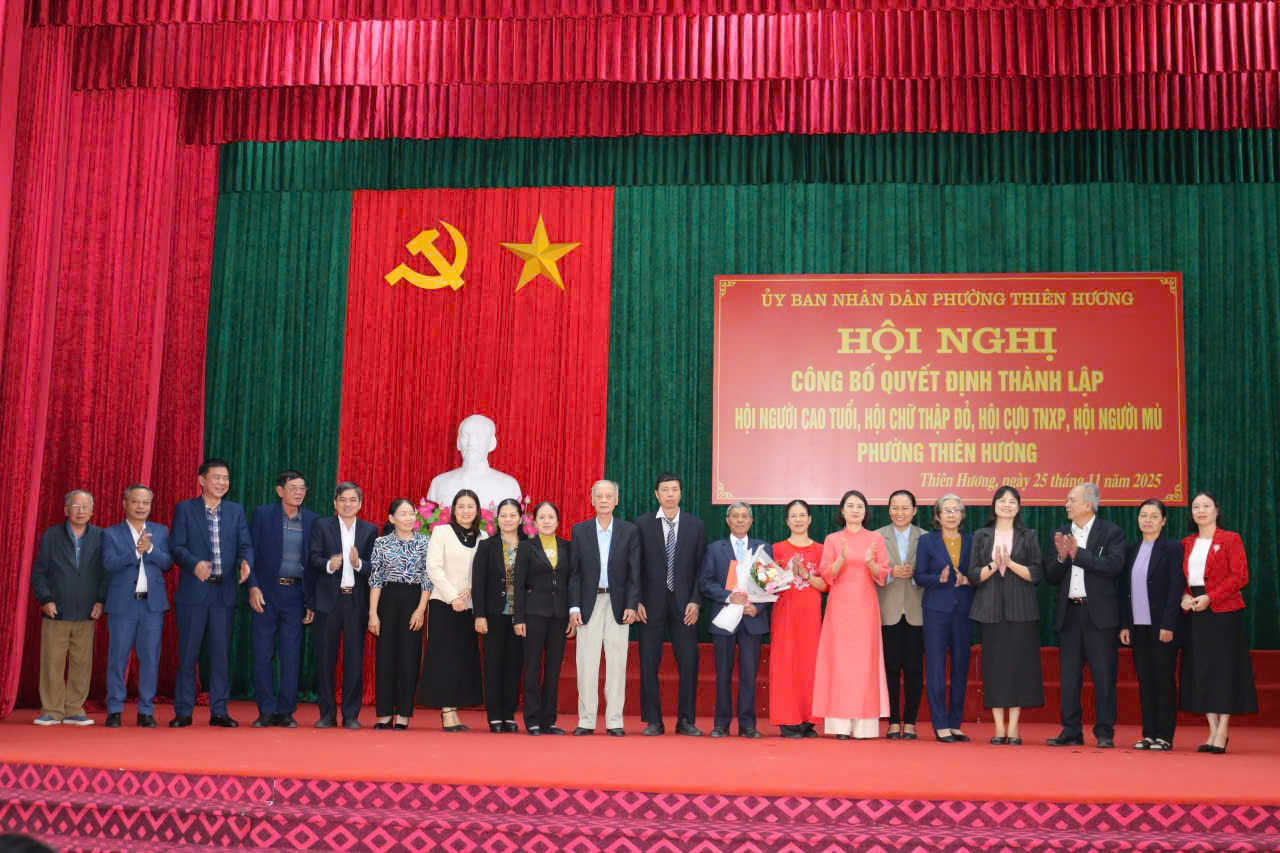 Sáng ngày 25/11/2025, Ủy ban nhân dân phường Thiên Hương trang trọng tổ chức Hội nghị công bố Quyết định thành lập bốn tổ chức Hội: Hội Người cao tuổi, Hội Chữ thập đỏ, Hội Cựu Thanh niên xung phong và Hội Người mù phường Thiên Hương. Đây là sự kiện có ý nghĩa quan trọng, đánh dấu bước hoàn thiện hệ thống chính trị ở cơ sở, củng cố khối đại đoàn kết và phát huy vai trò của các tầng lớp Nhân dân trong đời sống xã hội.